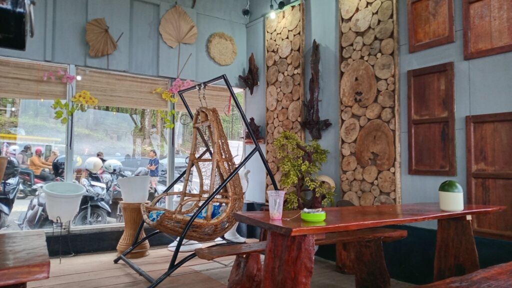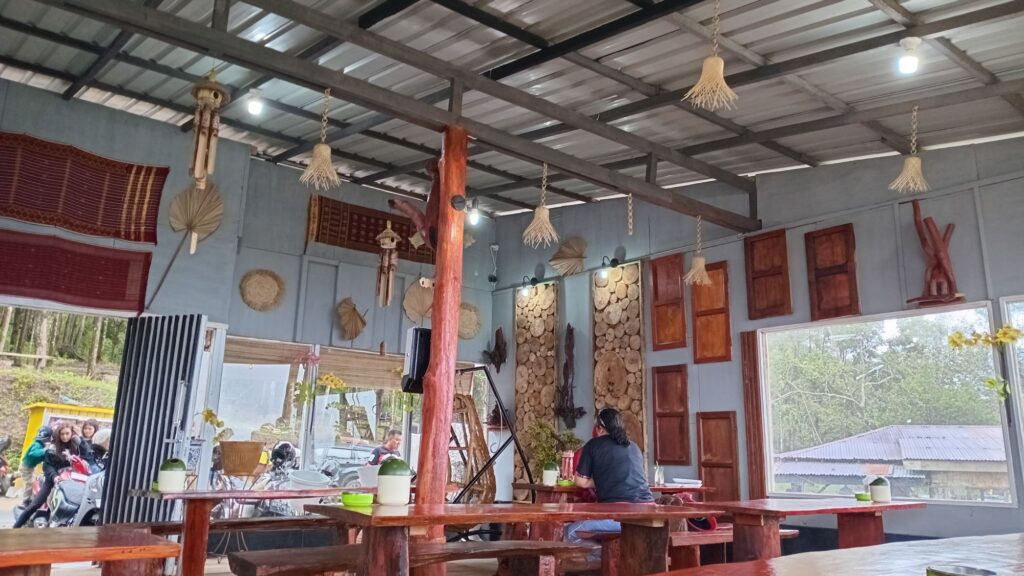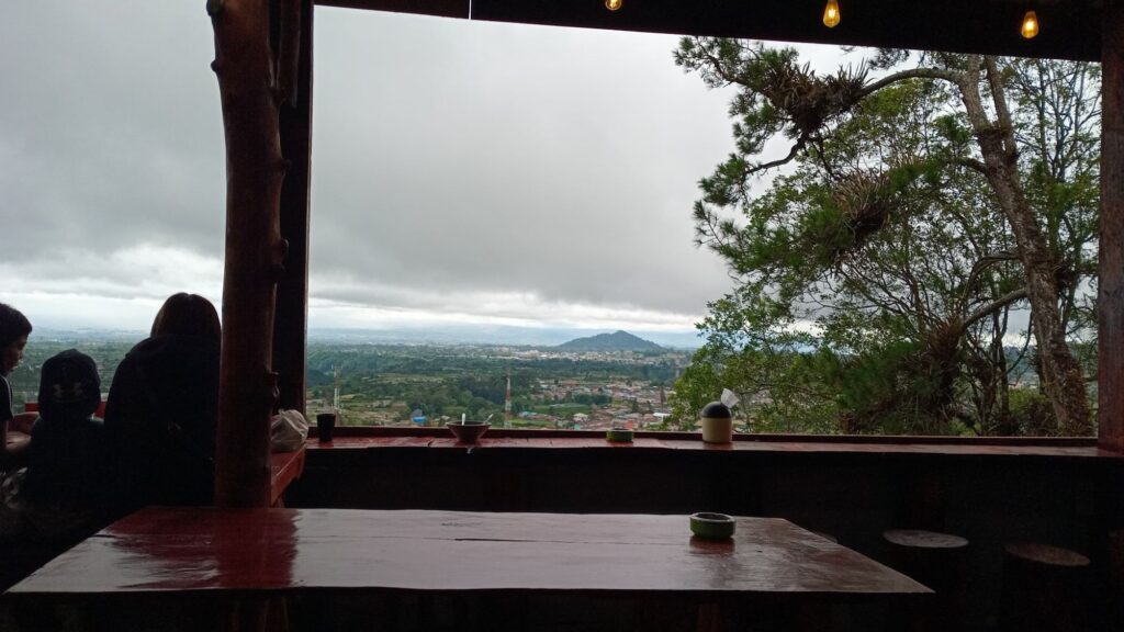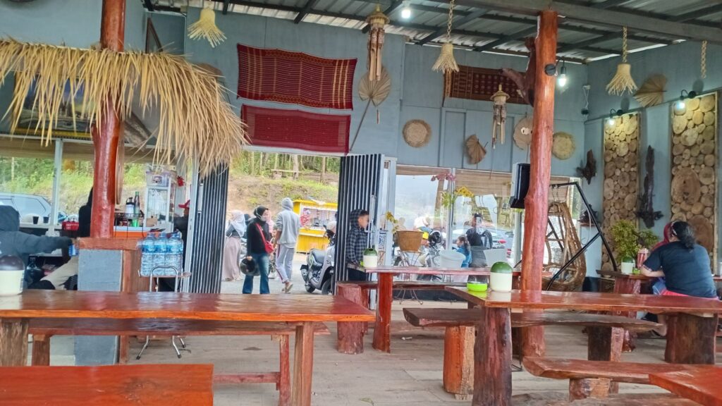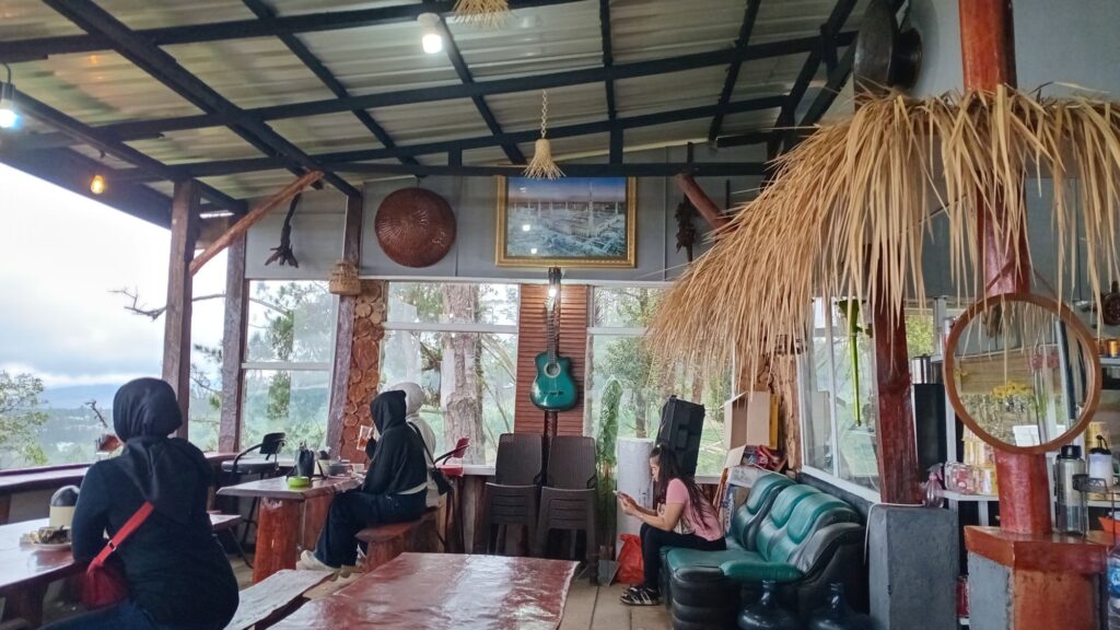 Warung tanpa musik ini ternyata justru membuat suasana jauh lebih cozy. Apalagi viewnya lukisan alam yang luar biasa. Mendengarkan deru angin yang menghasilkan irama dari gesekan dedaunan menjadi latar belakang irama obrolan para pengunjung.